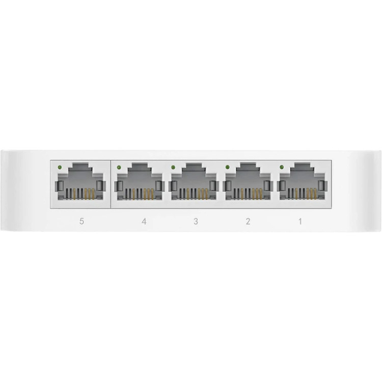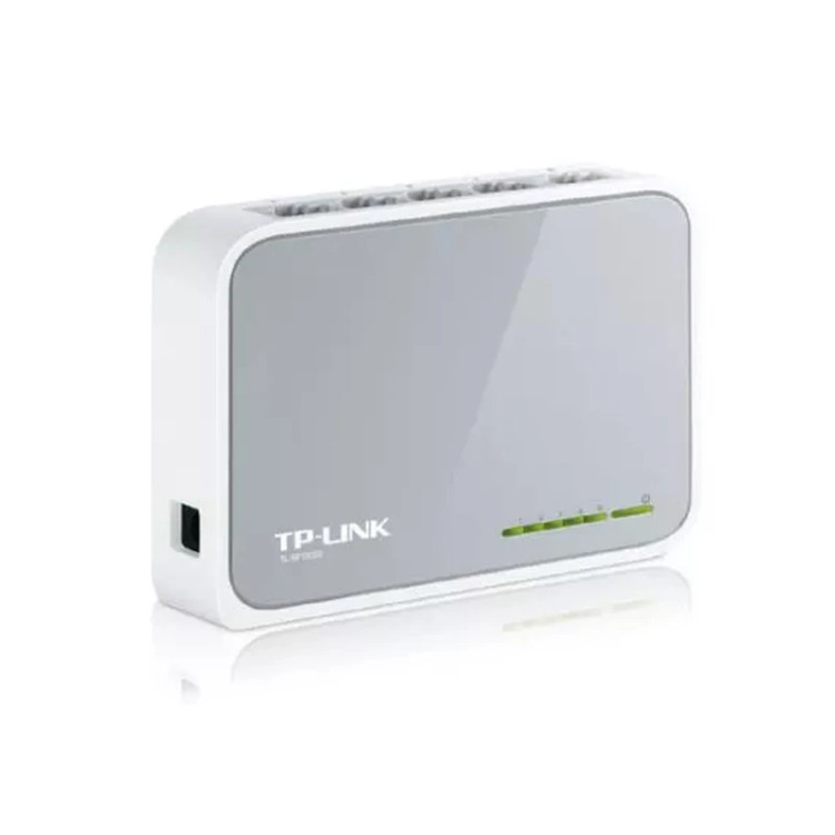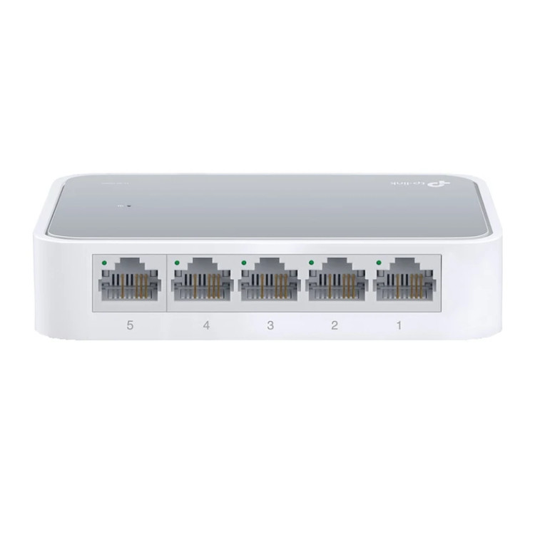 سوییچ «TL-SF1005D Ver 16.0» محصولی از برند «تی پی-لینک» (TP-LINK) است. این سوییچ دارای 5 پورت LAN است و میتواند برای گسترش شبکه و متصلکردن تعداد بیشتری از کاربران به آن مورد استفاده قرار بگیرد. پورتهای LAN بهکاررفته در TL-SF1005D Ver 16.0 از نوع 10/100 مگابیتی هستند که این سوییچ را به انتخاب مناسبی برای شبکههای خانگی تبدیل میکنند. تمام پورتهای LAN به قابلیت Auto MDI/MDIX مجهز هستند و میتوانید از هر نوع کابل مجهز به سوکت RJ45 روی آنها استفاده کنید. با استفاده از چنین سوییچی میتوانید کامپیوتر دسکتاپ و لپتاپ، کنسول بازی خانگی، ذخیرهساز NAS و دوربینهای نظارتی منزلتان را به شبکه وصل کنید. ظرفیت سوییچینگ در این محصول یک گیگابیت بر ثانیه است و پهنای باند انتقال داده در حالت استفاده از Full Duplex Mode تا 200 مگابیت بر ثانیه خواهد رسید. LED نشاندهندهی روشنبودن سوییچ، در قسمت بالای بدنه تعبیه شده است و LEDهای نشاندهندهی فعالیت هر پورت، روی همان پورت قرار گرفتهاند. برق مورد نیاز سوییچ، TL-SF1005D Ver 16.0 توسط آداپتور خارجی تامین میشود و با استفاده از Green Technology بهکاررفته درون سوییچ، میزان مصرف برق آن بسیار ناچیز است.