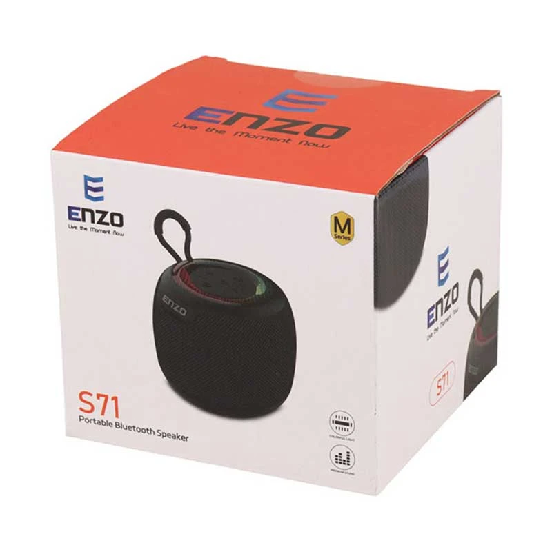 اسپیکر انزو این کوچولوی دوست داشتنی و پر قدرت دارای شیار کارت حافظه میکرو اس دی، توانایی دریافت امواج رادیویی روی موج FM بوده و تامین انرژی از طریق باتری داخلی اسپیکر با ظرفیت معادل 1800 میلی آمپر ساعت صورت می گیرد. مجهز به دکمه های فیزیکی به منظور کنترل موسیقی، خاموش و روشن کردن دستگاه و غیره است و جنس استفاده شده در ساخت بدنه پلاستیک با مقاومت بالا در صدمات احتمالی می باشد. اتصال بیسیم به وسیله بلوتوث ورژن 5.1 با برد حدود 10 متر صورت می گیرد و توانایی شارژ دوباره دستگاه به وسیله پورت تایپ سی و کابل همراه را دارد و دارای نشانگر LED و بند به منظور سهولت در جابجایی محصول می باشد. همچنین برخورداری از نورپردازی داخلی RGB و دارای توان خروجی 7 وات از دیگر ویژگی های این محصول است.