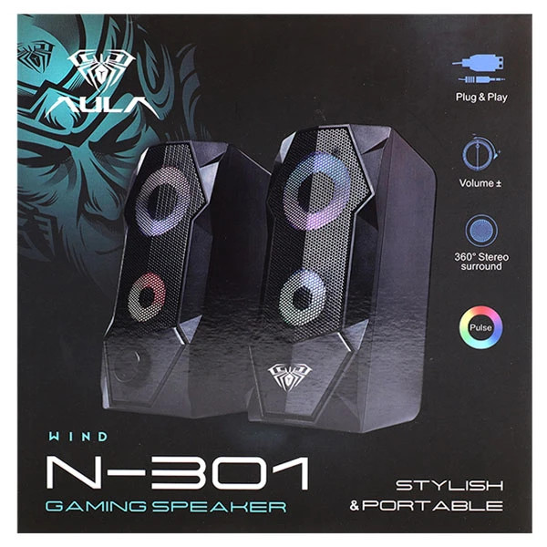اسپیکر «WIND N-301» ساخته شده توسط شرکت «آئولا» است. این اسپیکر به صورت سیم دار طراحی شده و مناسب برای لپ تاپ و کامپیوتر است. این محصول دارای کابل صدا بوده (جک 3.5 میلی متر) و بوسیله رابط USB تامین انرژی که می توانید کامپیوتر و یا لپ تاپ خود استفاده کنید. این اسپیکر از قدرت صدای بالایی برخوردار است و بوسیله آن می توان از وضوح صدای موسیقی لذت برد. این اسپیکر با وزن کمی که دارد (حدود 600 گرم) قابل حمل بوده و به راحتی میتوان از آن در هر محل استفاده کرد و از صدای واضح آن لذت برد. حجم صدای آن به گونه ای است که به راحتی پاسخگوی نیازهای صوتی مورد نیاز در منزل، مغازه، کافی شاپ و رستورانها، کلاسهای آموزی و موارد مشابه می باشد. نورهای RGB این اسپیکر زیبایی خاصی دارد و اکثر گیمرها برای چیدمان میز کامپیوتر خود دنبال کننده این نوع اسپیکرها هستند.