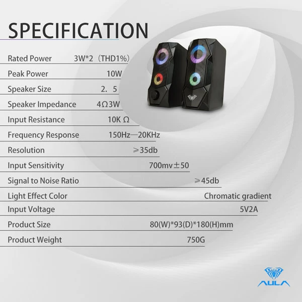اسپیکر «WIND N-301» ساخته شده توسط شرکت «آئولا» است. این اسپیکر به صورت سیم دار طراحی شده و مناسب برای لپ تاپ و کامپیوتر است. این محصول دارای کابل صدا بوده (جک 3.5 میلی متر) و بوسیله رابط USB تامین انرژی که می توانید کامپیوتر و یا لپ تاپ خود استفاده کنید. این اسپیکر از قدرت صدای بالایی برخوردار است و بوسیله آن می توان از وضوح صدای موسیقی لذت برد. این اسپیکر با وزن کمی که دارد (حدود 600 گرم) قابل حمل بوده و به راحتی میتوان از آن در هر محل استفاده کرد و از صدای واضح آن لذت برد. حجم صدای آن به گونه ای است که به راحتی پاسخگوی نیازهای صوتی مورد نیاز در منزل، مغازه، کافی شاپ و رستورانها، کلاسهای آموزی و موارد مشابه می باشد. نورهای RGB این اسپیکر زیبایی خاصی دارد و اکثر گیمرها برای چیدمان میز کامپیوتر خود دنبال کننده این نوع اسپیکرها هستند.