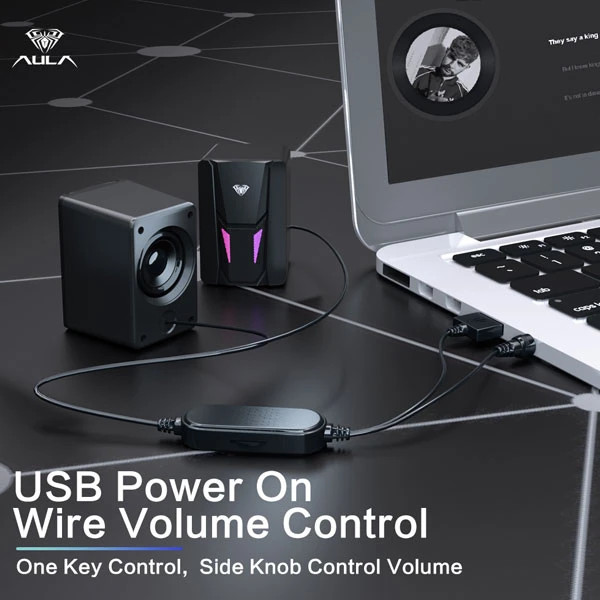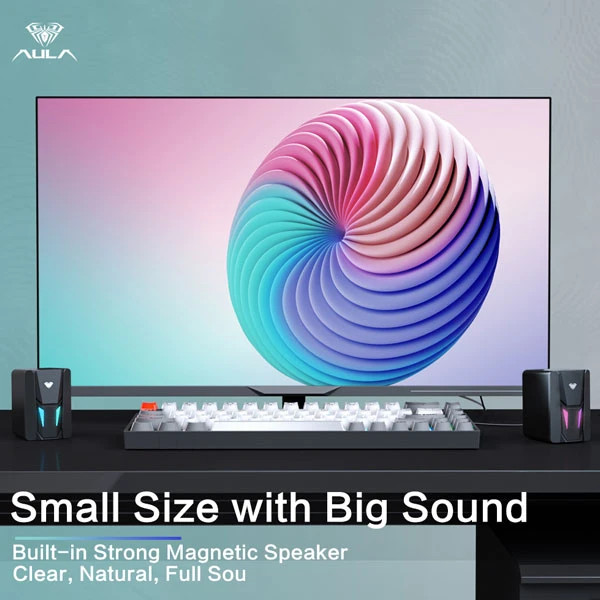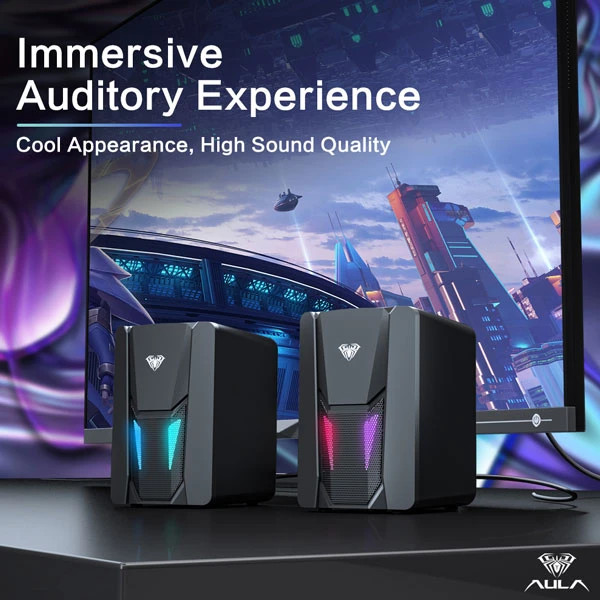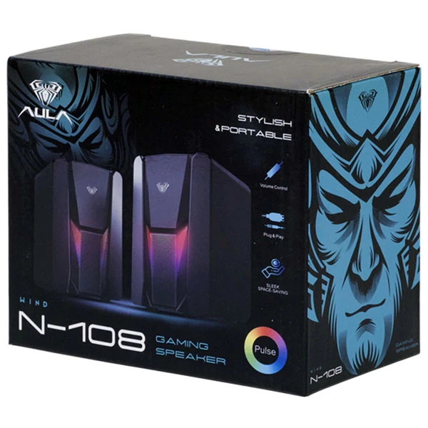 اسپیکر دسکتاپ آئولا مدل WIND N-108، درگاه ارتباطی شامل جک 3.5 میلیمتری صدا، USB، دارای نورپردازی RGB، مناسب بازی