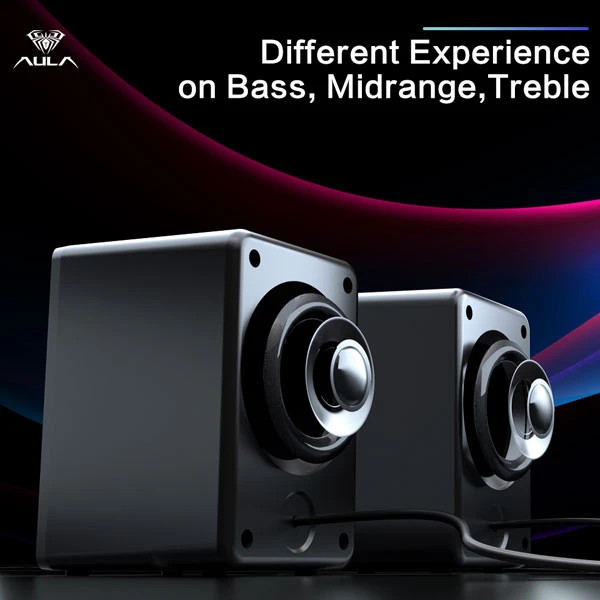 اسپیکر دسکتاپ آئولا مدل WIND N-108، درگاه ارتباطی شامل جک 3.5 میلیمتری صدا، USB، دارای نورپردازی RGB، مناسب بازی