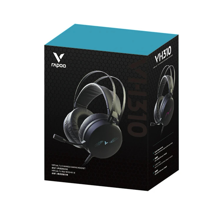 هدست VH310 یک هدست مخصوص گیم محصولی از کمپانی Rapoo است که در ساخت لوازم جانبی حرفه ای و مقرون به صرفه برای گیمرها، تخصص پیدا کرده است. این هدست دارای صدای فراگیر 7.1 کاناله، گوشیهای بزرگ، بدنهای محکم و سبک و میکروفون جمع شونده و حالت پذیر است. این هدست دارای بدنهای محکم و در عین حال بسیار سبک و راحت است. سربند فلزی این هدست دارای روکش پلاستیکی نرم است که هیچ فشاری به سر شما وارد نمیکند. گوشیهای این هدست دارای روکش ابری نرم هستند و حتی پس از ساعتها بازی نیز احساس خستگی نخواهید کرد. این گوشیهای بزرگ تمام گوش شما را پوشش میدهند و مانع ورود صداهای محیطی به درون هدست، هنگام بازی میشوند تا بدون مزاحمت از بازی خود لذت ببرید. این هدست قابل تنظیم است و تمام افراد از تمام گروههای سنی میتوانند از آن استفاده کنند. نوع اتصال این هدست از نوع با سیم و با رابط USB است. خود کابل از کیفیت مناسبی برخوردار است و روی آن کنترلری جهت کم و زیاد کردن حجم صدا وجود دارد. ضمن اینکه روی این کنترلر دو دکمه ی LED و Mic جهت کنترل کردن میکروفون و نورپردازی دور گوشی ها که دارای LED های RGB است وجود دارد. کیفیت صدایی شفاف ، کاپ های نرم و ایزولاسیون دور گوش از ویژگی های دیگر این هدست است. این هدست از نوع دور گوشی است و گوشتان را کاملا پوشش میدهد. بند روی سر، با طراحی انعطافپذیر و ارگونومیک خاصی تولید شده است تا با استفادهی طولانیمدت از آن، فشاری به سرتان وارد نشود. طول کابل 2.25 متر است و برای استفاده هنگام کارکردن با کامپیوتر بسیار مناسب است.