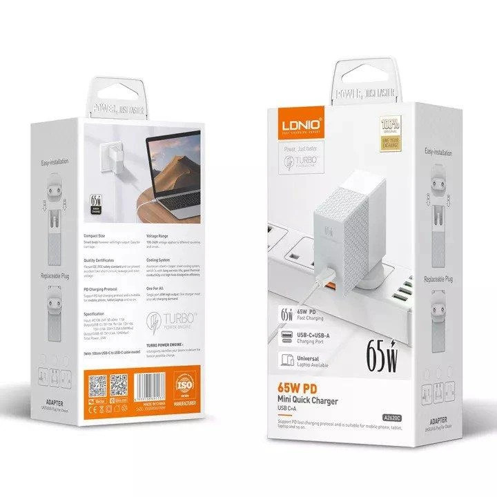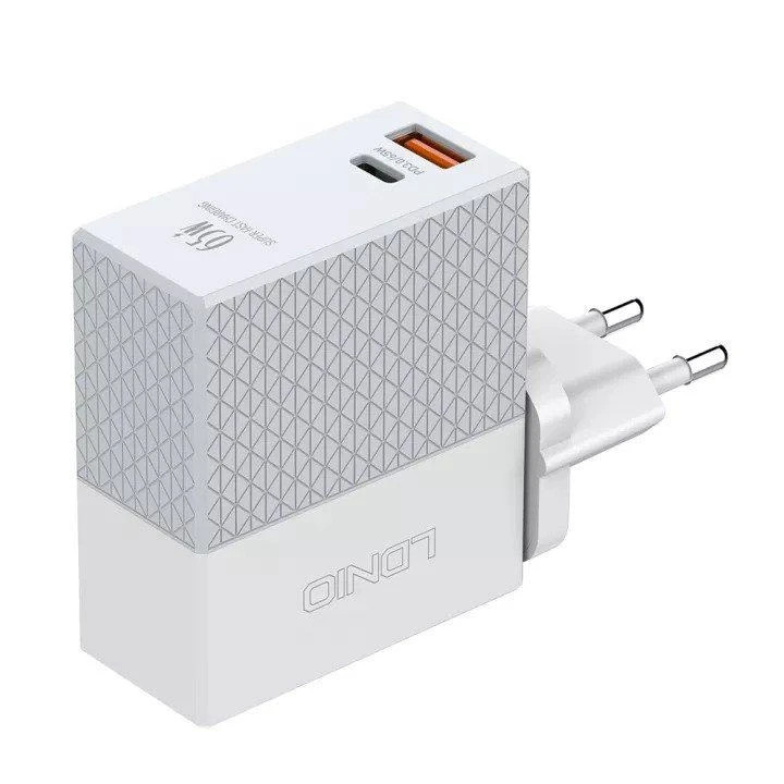 ارژر دیواری الدینیو LDNIO A2620C Fast Wall Charger با تکنولوژیهای مورد استفاده در آن بسیار کاربردی بوده و قابلیتهای خوبی را برای استفاده در اختیار شما قرار داده است تا بتوانید بدون اینکه نگران خراب شدن گوشی و وسیلههای خود باشید، از این شارژر استفاده کنید. ولتاژ ورودی شارژر دیواری الدینیو برابر با 100-240V است. روی بدنه این شارژر 2 پورت USB و Type C وجود دارد. اما خروجی و ولتاژ آنها با یکدیگر متفاوت هستند. درگاه تایپ سی دارای ولتاژ و شدت جریان خروجی برابر با: 5V~3A / 9V~3A / 12V~3A / 15V~2.5A / 20V~3.25A هستند و حداکثر توان خروجی از این پورت برابر با 65 وات است. درگاه یو اس بی نیز دارای ولتاژ و شدت جریان خروجی 5V~2.4A است و توان خروجی حداکثری آن هم برابر با 12 وات است. توجه داشته باشید که در صورت استفاده همزمان از درگاهها، حداکثر توان خروجی از شارژر دیواری الدینیو A2620C برابر با 57 وات خواهد شد که در این حالت، خروجی درگاه یو اس بی برابر با 12 وات و خروجی درگاه تایپ سی نیز برابر با 45 وات است. این شارژر از قابلیت PD3.0 نیز بهره برده است و همین مورد سبب شده تا بتوانید بازه گستردهتری از وسایل را شارژ نمایید. برای اینکه خیال کاربران هنگام استفاده از این شارژر راحت باشد، استانداردهای ایمنی مختلفی نیز برای آن در نظر گرفته شده است. برای مثال: ایمنی اتصال کوتاه، جلوگیری از گرم شدن بیش از اندازه، جلوگیری از عبور بیش از اندازه جریان و... از جمله استانداردهای مختلف به کار رفته در این دستگاه هستند. جنس استفاده شده برای ساخت این شارژر از PC و آلیاژ آلومینیوم است که مقاومت مطلوبی را برای آن ایجاد کرده است. همین متریال استفاده شده در شارژر سبب شده تا مقاومت آن در برابر حرارت حداکثر تا دمای 850 درجه سانتیگراد باشد. نوع دوشاخه استفاده شده در این شارژر دیواری EU است و مطابق با پریزهای ایرانی خواهد بود، بنابراین نیازی به تبدیل نخواهید داشت. طراحی این دو شاخه به گونهای است که میتوان آن را به راحتی برداشته و از تبدیلی که مناسب با کانکتورهای آن باشد، استفاده نمود و برای مثال دوشاخه را به سه شاخه تبدیل کرد و مورد استفاده قرار داد. گفتنی است که همراه با این شارژر، یک کابل تایپ سی نیز قرار داده شده است