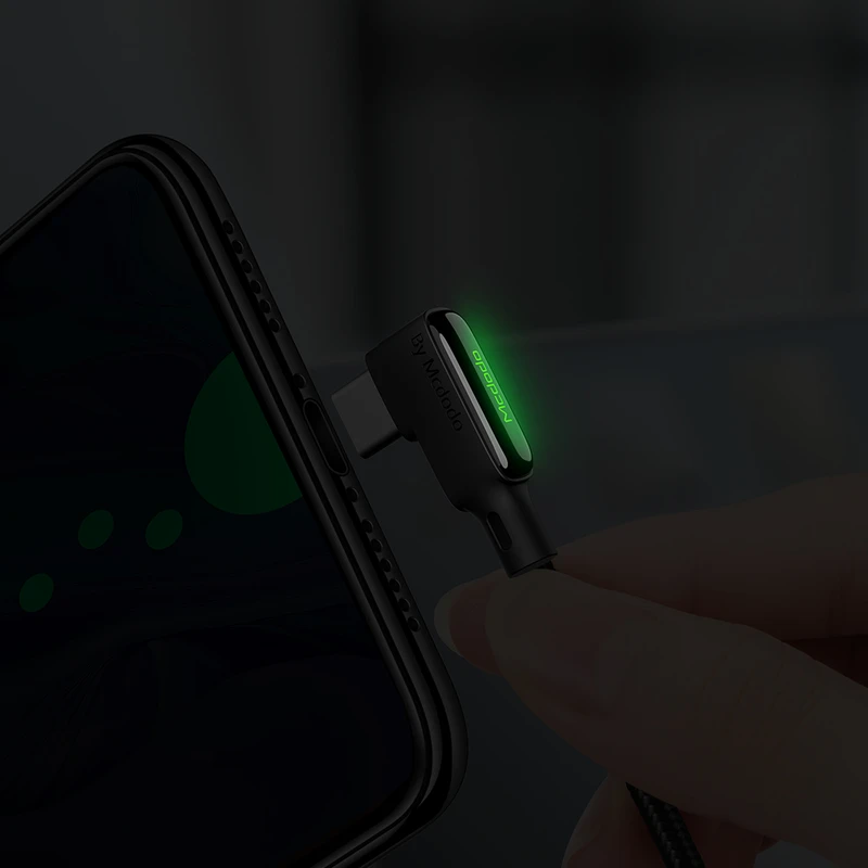 بافته شده کنفی + TPE فنری دو سر ۹۰ درجه گیمینگ دارای LED ساپورت QC۴.۰